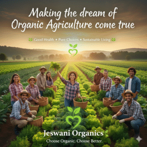 Jeswani goal is to make the dream of organic agriculture come true andprovide each one of us with the opportunity of good health and choice of organic food products. Our Aim is to be the best standalone organic product with compatible features, aimed towards urban people who prefer quality and sustainability in their lifestyle.
